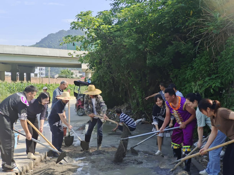 5月是劳动光荣的黄金季节,也是宣传民族团结进步的好时节,为充分调动各族群众参与民族团结进步创建工作的积极性,提升凝聚力,进一步铸牢中华民族共同体意识,营造干净整洁的村屯环境和社会氛围,改善农村人居环境,着力解决挂点村各民族群众“急难愁盼”问题,增强群众的获得感和幸福感,近日,区信息中心会同里高村委组织两委干部和群众开展一线联合志愿服务活动,以“民族团结一家亲,人居环境共治理”为主题,对里高村新村屯道路旁一处垃圾存放点进行升级改造,干群联动齐发力,助力村容村貌出新彩、亮新颜。
