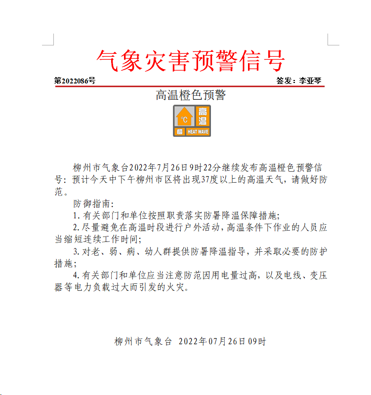 9时22分柳州市气象台继续发布