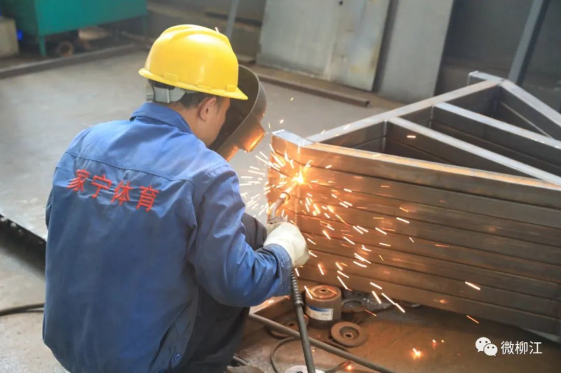 而在柳州家宁体育设施有限公司的生产车间里,机器轰鸣,焊花四溅,工人们忙碌的身影来回穿梭,同样是一派热火朝天的奋战景象。该公司业务遍布广西区内外,大部分属于各地区学校内体育设施建设。为抓住暑期学校场地空档期,该公司车间生产和户外施工也进入了高峰期,公司不断增加人力,力争把学校建设项目赶在秋学期开学前完工。