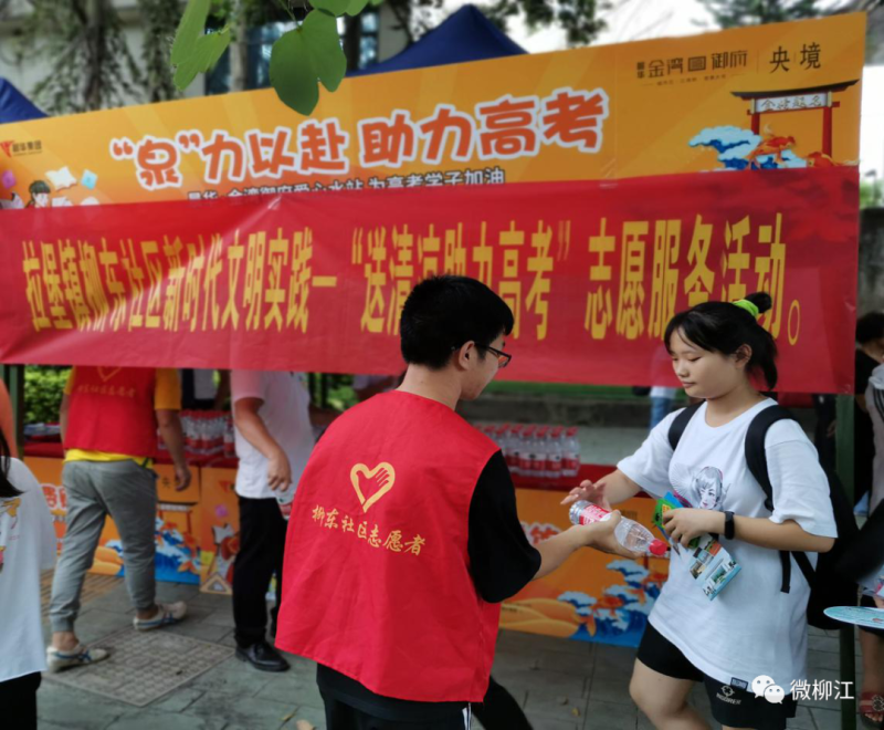 高考期间开展志愿服务,为考生送上清凉饮水。