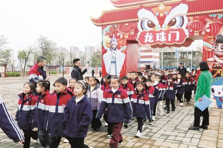 在市思贤小学的2025年春季学期“贤娃无畏凌云志 扶摇直上入云苍”开学典礼上,同学们以班级为单位,列队步入操场,每个同学的脸上都洋溢着开心的笑容。在老师的注视下,他们迈着坚定的步伐,走过象征勇气与智慧的“龙珠门”,开启新学期的学习生活。“新学期,我希望各科成绩都能有所提高。我会勇敢面对困难、突破自我,通过努力去达成每一个目标。”五年级一班学生刘韦媛信心满满地说。
