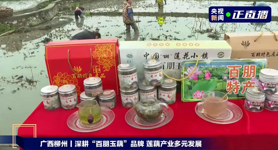 近年来,百朋镇在做强“百朋玉藕”品牌上下足功夫。一方面,狠抓莲藕种植、营销和加工,并推动荷莲茶产业链发展,打造九品香莲、荷花茶、荷叶茶、藕粉螺蛳粉等特色农产品,通过线下售卖、“直播带货”等方式扩大知名度和影响力;另一方面,依托当地优美的人文环境,大力发展乡村旅游产业,“以节促旅、以旅富农”,连续举办十二届荷花文化旅游节,2024年接待游客百万人次,旅游消费超亿元,为镇域经济的蓬勃发展注入新的活力。