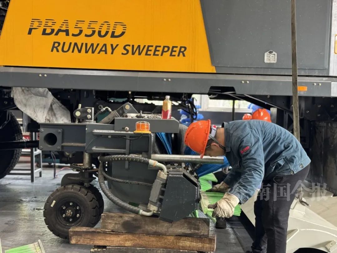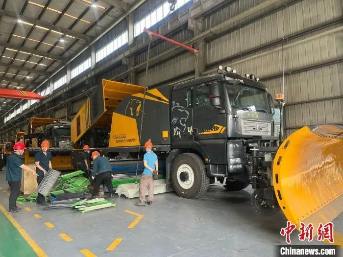 在中国重汽集团柳州运力专用汽车有限公司的生产车间,停放着十多辆“个头”庞大的除雪车,几名工作人员相互配合,正在给一辆除雪车安装滚刷部位的配件。