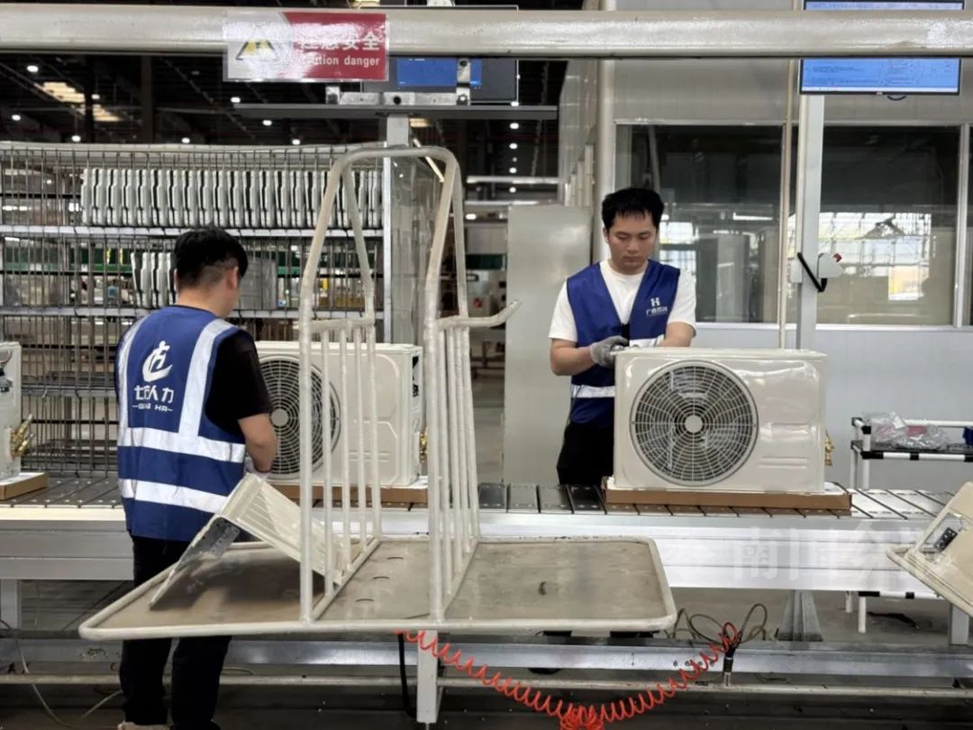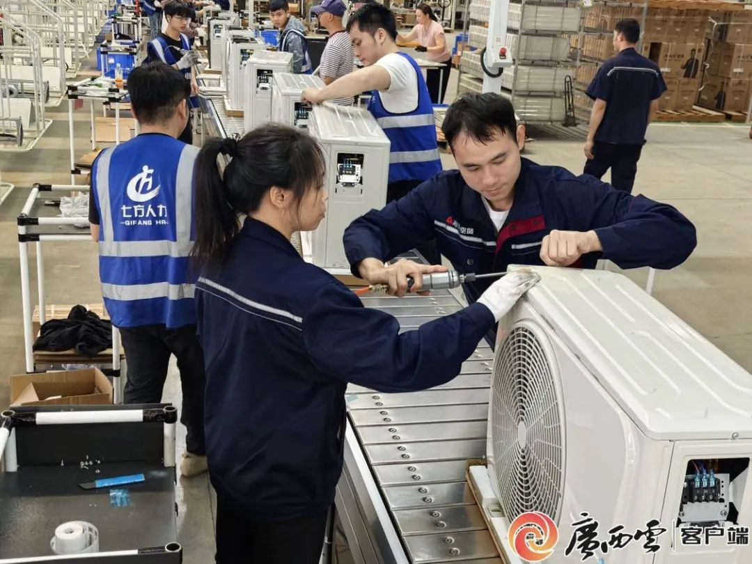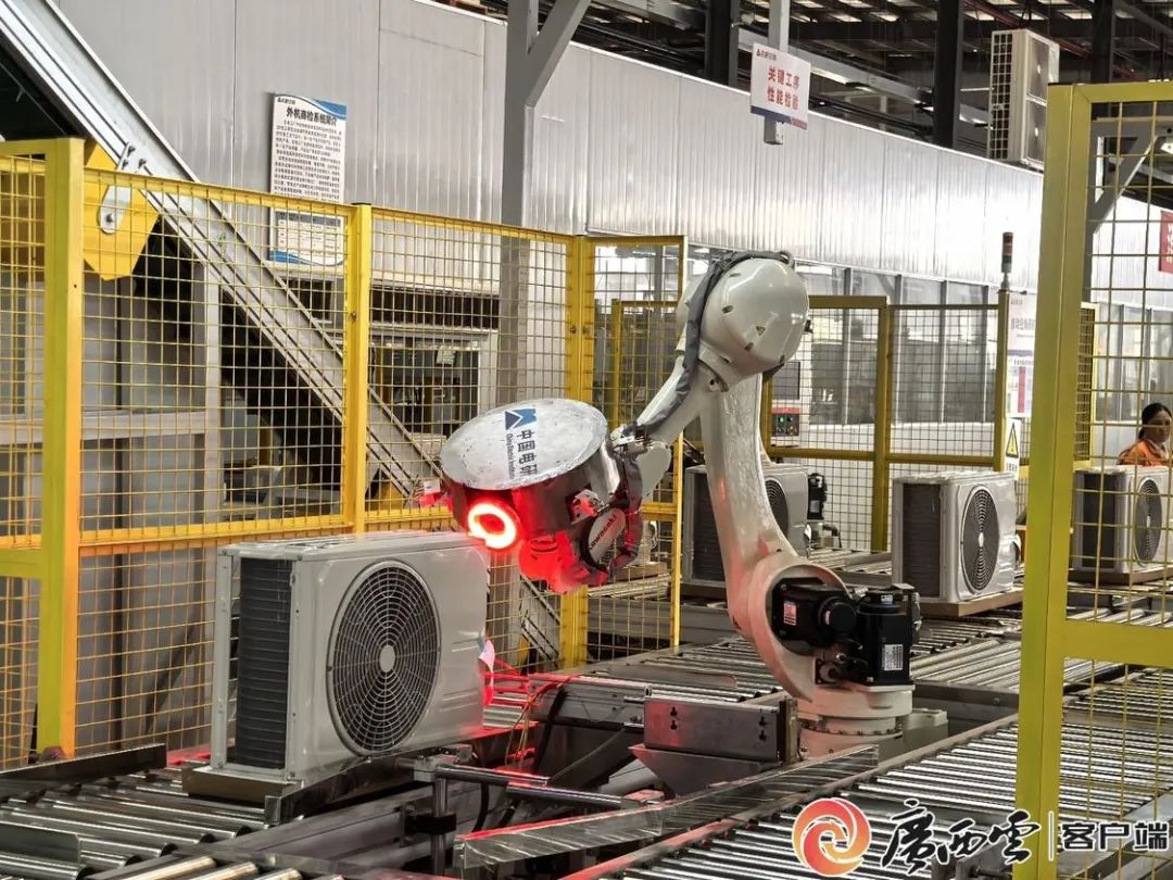 走进柳州市柳江区新兴工业园,柳州市志格空调有限公司全自动总装车间的四条智能化生产线同步运转,机械臂精准组装零部件,工人只需完成关键环节的辅助操作。生产线旁,一台台空调以平均10秒的节奏“走下”流水线,日产量可达3000余台。