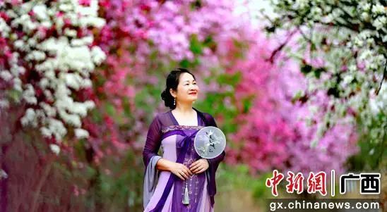 柳州市柳江区进德镇白山村紫荆花吸引市民前来“打卡”拍照。