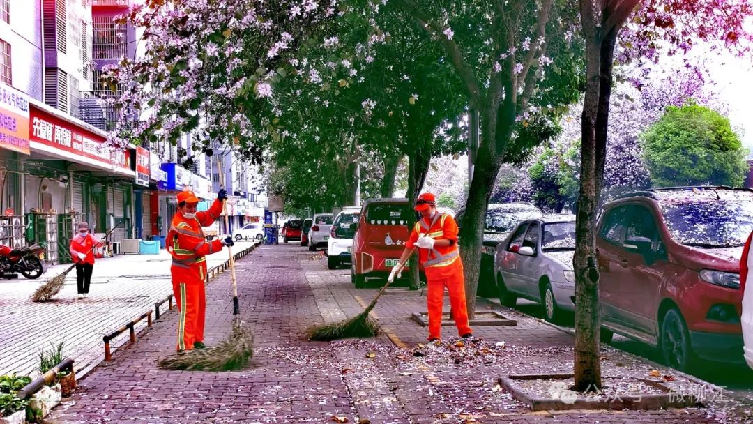 与此同时,柳江区环卫工人们也在默默地守护着这份美好。他们合理安排清扫工作,及时清理枯花败叶,为市民和游客预留出赏花拍照的空间。柳江区环境卫生管理所负责人韩峰表示:“每年紫荆花盛开时,我们都会格外关注。看到大家开心地赏花,我们的辛苦也值得。”