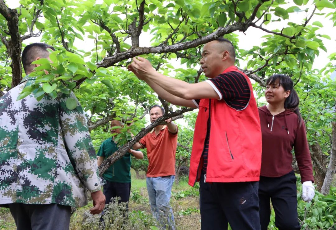 4月11日,笔者走进里高镇果门屯,放眼望去,连片的梨树宛如绿色的海洋,青涩的小果悄悄探出头,微风拂过,枝叶沙沙作响。农技人员在指导果农开展果园管护工作(见上图),现场一片忙碌景象。