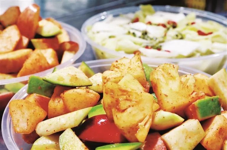 夏天吃消暑开胃,冬天吃解腻提味。近日,笔者走进位于柳江区白莲大道的市青山绿水农业科技有限公司的“酸嘢”生产车间,一股酸辣鲜香味扑鼻而来,只见10余名工人在熟练地将新鲜水果清洗、去皮、切块、腌制,制作成一袋袋“酸嘢”。这些“酸嘢”下了生产线,就通过物流送至位于市区及南宁、桂林等地的会员店。