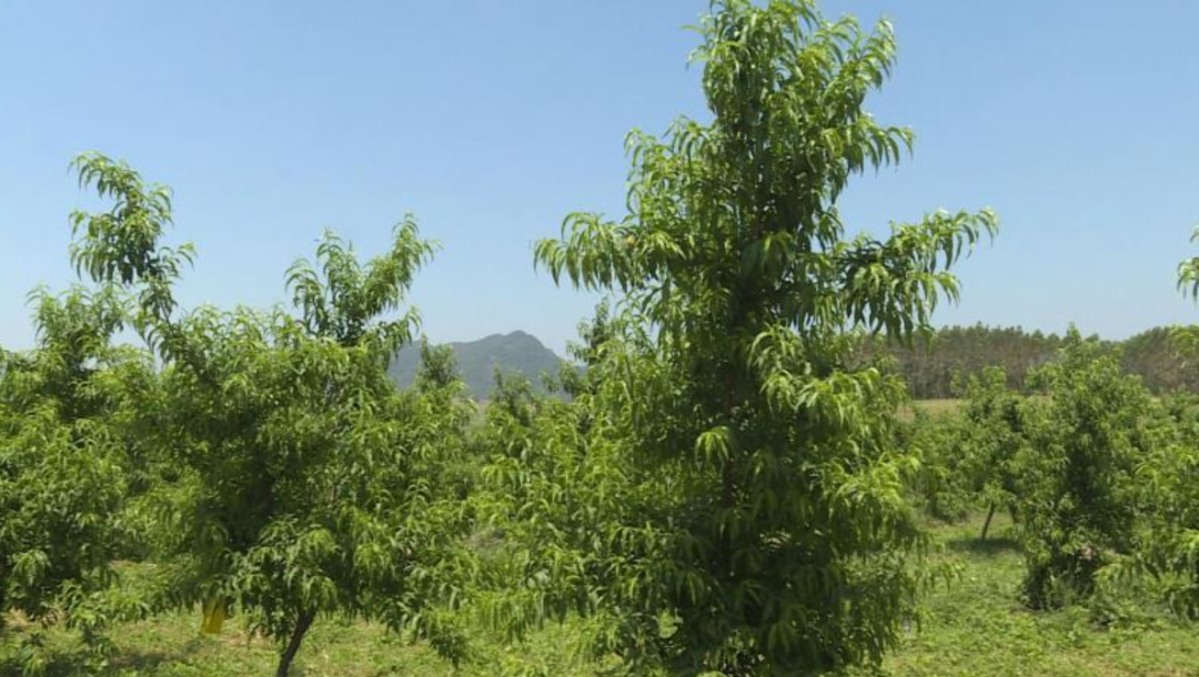 随着示范基地挂果投产,也意味着低需冷量早熟桃——“京清16号”在柳州试种成功。据专家介绍,今年是示范基地挂果投产的第一年,每棵桃树不宜挂太多果实,待明年进入丰产期,产量将翻番,预计每亩产量在3000斤左右。而且在专家的指导下,基地还采用了现代化种植模式,如6米行距和3米株距、Y字整形、水肥一体化、安装驱鸟器等,帮助果树更好地生长。