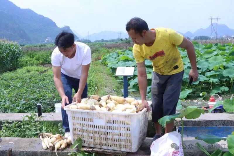 初夏时节,微风轻拂,荷塘泛起层层涟漪。在享有“中国玉藕之乡”美誉的柳江区百朋镇万亩藕田里,藕农们抢抓农时采挖莲藕,全力抢占早市先机。