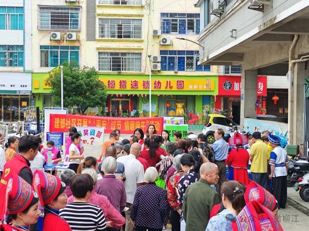 活动伊始,建都壮欢文艺队给大家带来壮欢表演《各族人民团结紧,防艾拒毒保安康》,阿哥、阿姐的美妙歌声,不仅唱响各族人民大团结,也以趣味的歌词宣传防艾拒毒小知识。在有奖抽答环节,现场氛围热情高涨,群众回答端午节习俗、防诈骗小问题,收获小礼品。此次活动,不仅让群众感受到浓浓的端午节日氛围,也提高群众防诈骗知识水平。