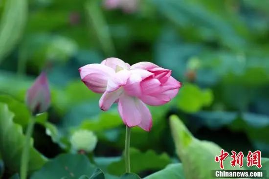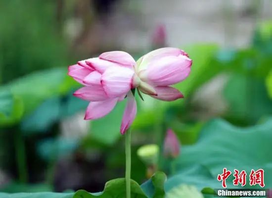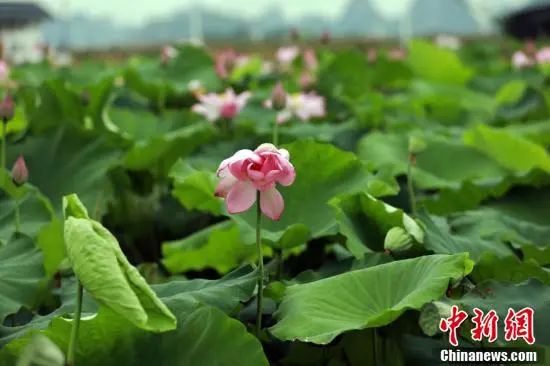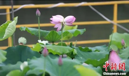 近日,在广西柳州市柳江区成团镇莲花屯窑香莲花庄园内,一株罕见的并蒂莲悄然绽放,吸引游客前来观赏。