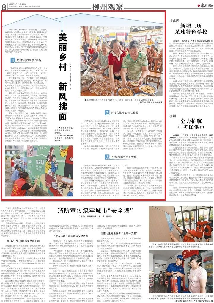 柳江区高质量发展亮点频频“出圈”,新华社、人民网、中国新闻网、《广西日报》、南国今报APP、《柳州日报》、《柳州新闻》、柳州1号APP等主流媒体平台聚焦报道,从就业增收、特色产业、文旅融合、移风易俗等领域,全方位展现柳江发展蓬勃活力,有力提升对外知名度和美誉度。