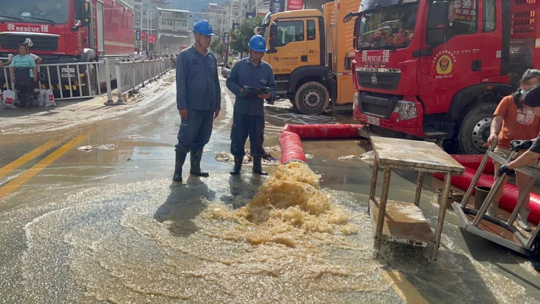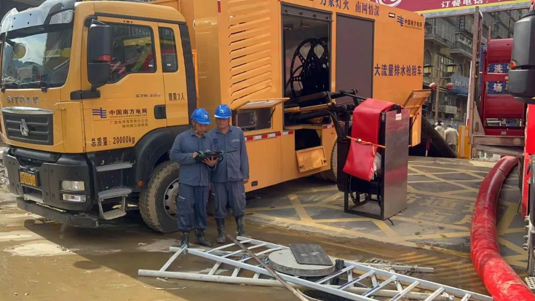 南方电网广西柳州柳江供电局支援贵州榕江抗洪抢险工作,正在查看排涝情况。
