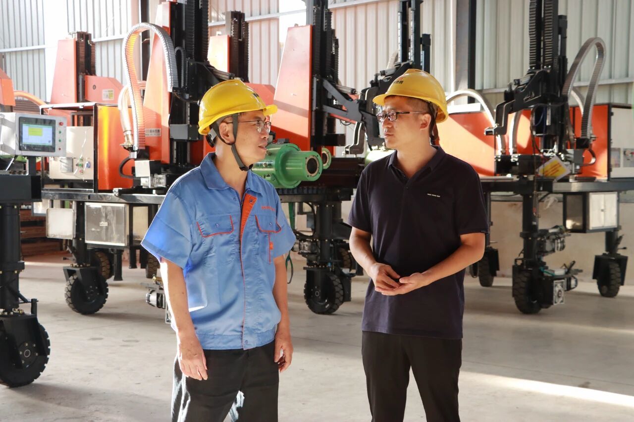 目前,该企业正推进70亩用地扩建项目,同步建设生产车间、研发综合楼及配套设施,全力引进智能化生产设备,加速从传统制造向智能产品研发制造转型。项目建成后,将形成年产610台套桥梁智能施工成套设备的生产能力,预计可实现年产值2.72亿元。针对企业转型需求,柳江区智能家电及智能终端产业工作专班第一时间上门对接,帮助企业理解政策、用足资源,全程指导项目建议书撰写,以耐心细致的服务为企业发展注入“强心剂”。