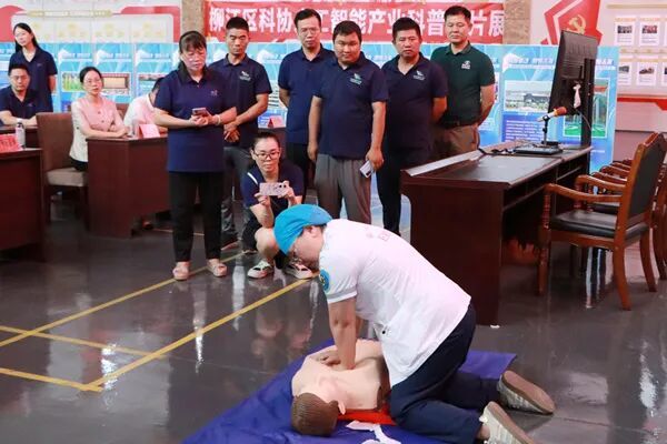 柳江区中医医院急救团队现场演示教学心肺复苏。