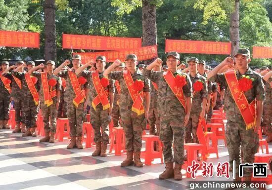 广西柳州市柳江区2025年下半年新兵入伍欢送大会日前在柳江区文化宫广场举行。应征青年们怀揣热血与梦想,肩负期盼告别家乡,即将奔赴军营,踏上保家卫国的光荣新征程。