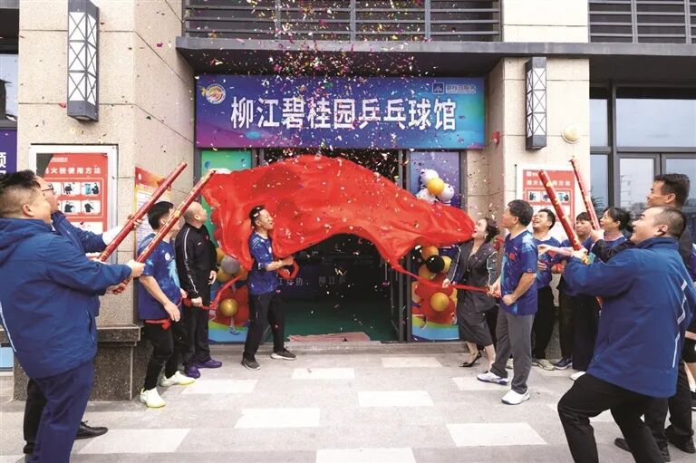 11月20日,柳江碧桂园小区新落成的乒乓球馆正式启用,明亮的场馆内居民挥拍切磋,活力满满。
