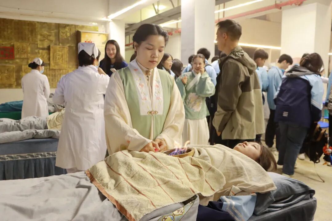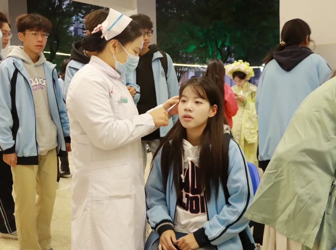 此外,活动还紧扣校园中医药文化与非物质文化遗产两大特色元素,设置中医健康义诊、中医药产品展示、养生操教学、急救示范互动等多个板块,以“趣味体验+实用赋能”为理念,将优质的中医诊疗技术与文化资源带到师生身边,让大家切身感受中医药“简、便、验、廉”的服务特色,有效推动中医药文化深度融入校园生活,进一步擦亮学校文化品牌,为中医药传承注入青春活力。