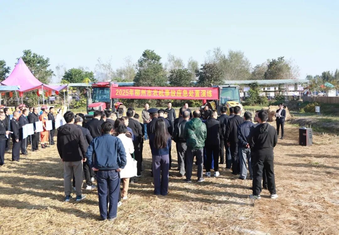为全面提升农机安全事故应急处置能力,健全农业安全生产应急响应机制,11月26日,2025年柳州市农机事故应急处置演练在柳江区区域性水稻产业中心(进德镇泗浪村刷子基地)成功举行。本次演练系统检验柳江区农机安全应急管理体系的运行成效,为筑牢农业安全生产防线提供有力支撑。柳州市农业农村局党组成员、市农机中心主任刘杰华,柳州市农业机械化管理中心副主任朱守业,柳江区人民政府党组成员钟海春参加演练。