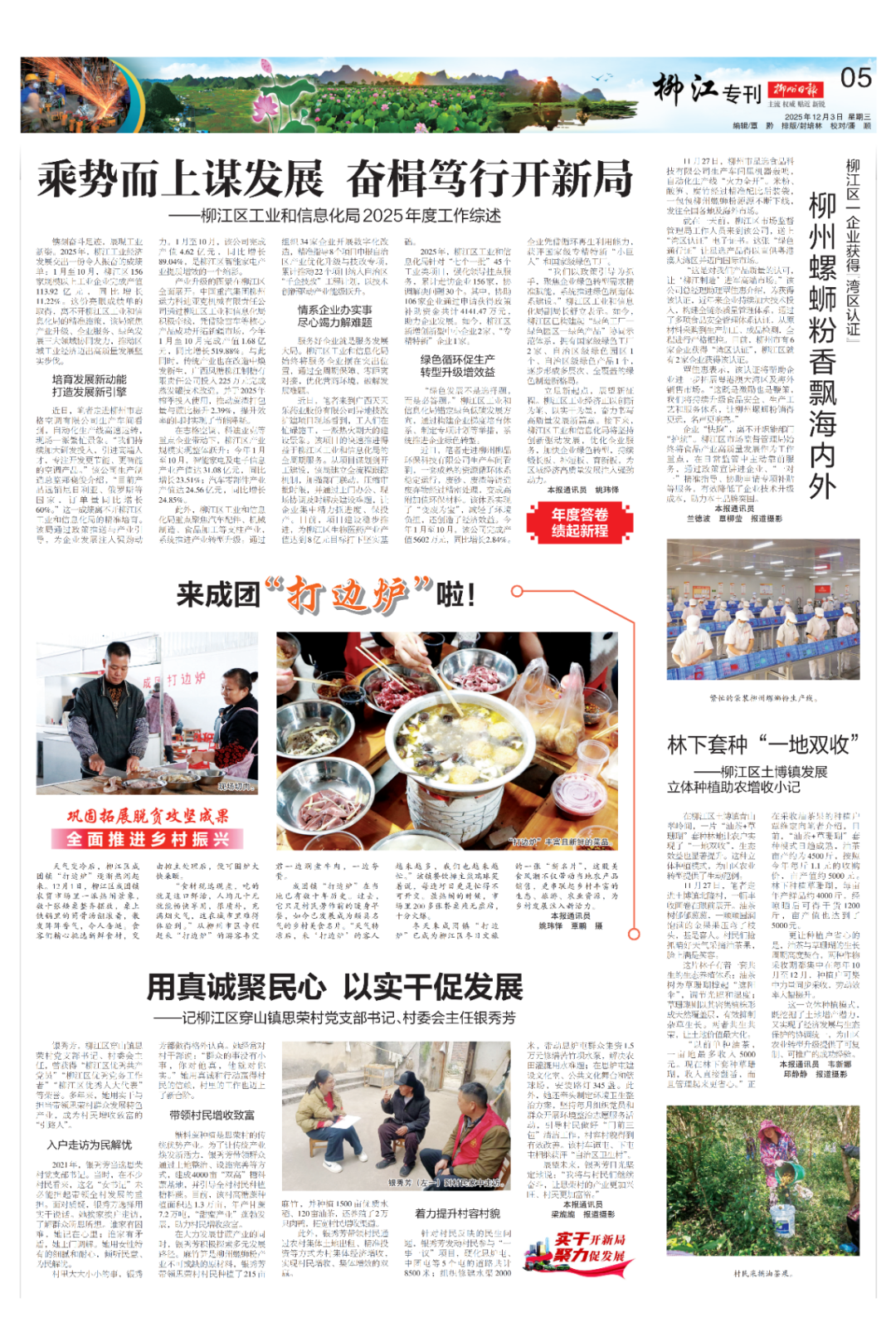 产业升级的图景在柳江区全面展开。中国重汽集团柳州运力科迪亚克机械有限责任公司通过柳江区工业和信息化局积极牵线,凭借除雪车等核心产品成功开拓新疆市场,今年1月至10月完成产值1.68亿元,同比增长519.88%。与此同时,传统产业也在改造中焕发新生,广西凤糖柳江制糖有限责任公司投入225万元完成蒸发罐技术改造,并于2025年榨季投入使用,推动蔗渣打包量与蔗比提升2.39%,提升效率的同时实现了节能降耗。