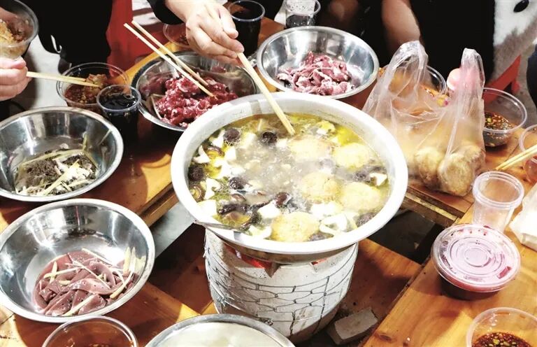 “食材现选现煮,吃的就是这口鲜活,人均几十元就能畅快享用,很质朴,充满烟火气,这在城市里难得体验到。”从柳州市区专程赶来“打边炉”的游客韦艾君一边涮煮牛肉,一边夸赞。