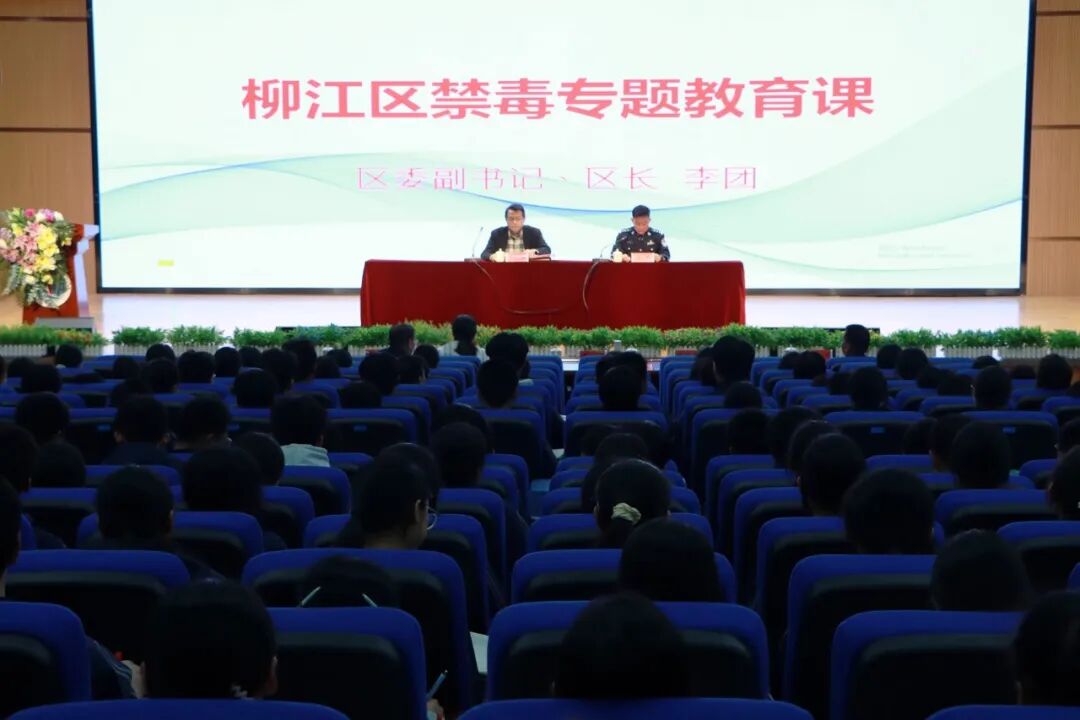 12月8日,区委副书记、区长、区禁毒委主任李团到柳州市第四十一中学,为该校学生讲授禁毒专题教育课。副区长、市公安局柳江分局局长、区禁毒委副主任杨军参加活动。