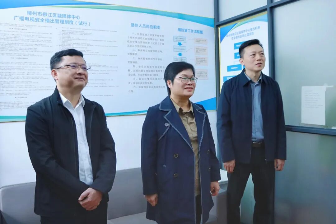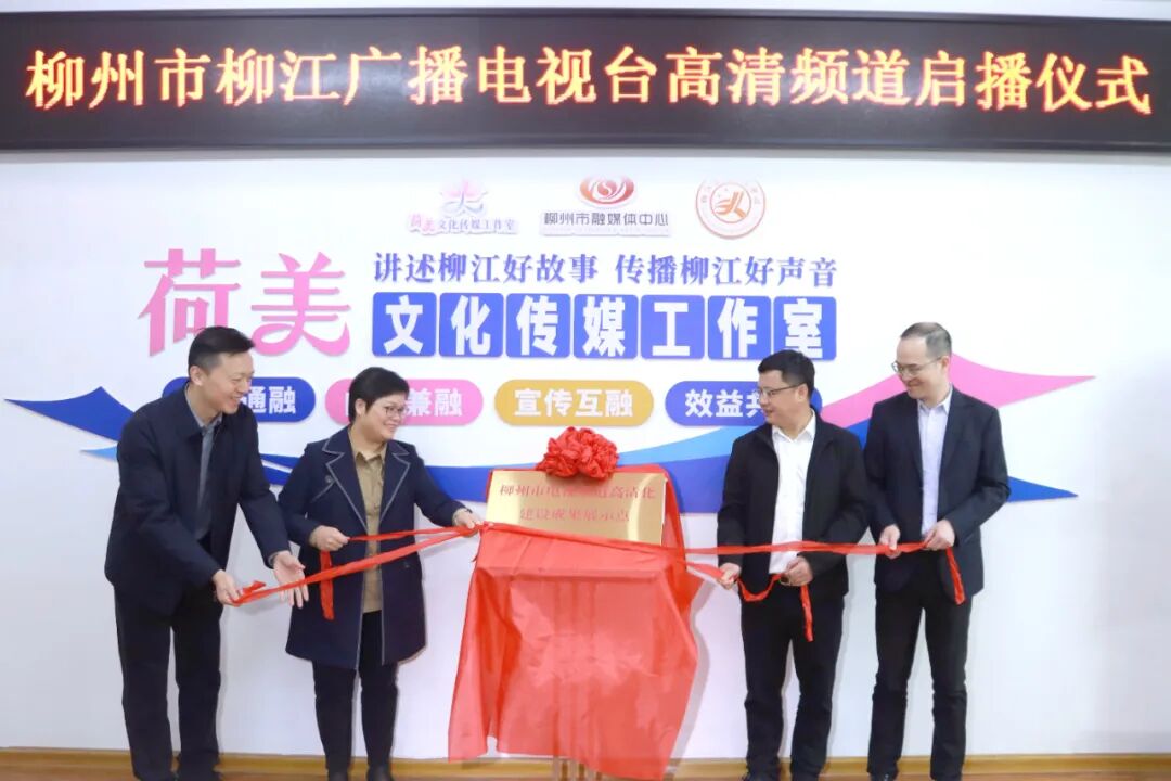 12月10日,柳州市柳江广播电视台高清频道启播仪式在柳江区融媒体中心举行。广西广电科技公司柳州分公司党委书记、总经理韦恒;区委书记玉秋静,区委常委、宣传部部长黄辉;广西广电科技公司柳州分公司党委副书记、常务副总经理杨勋参加仪式,共同为“柳州市电视频道高清化建设成果展示点”揭牌。