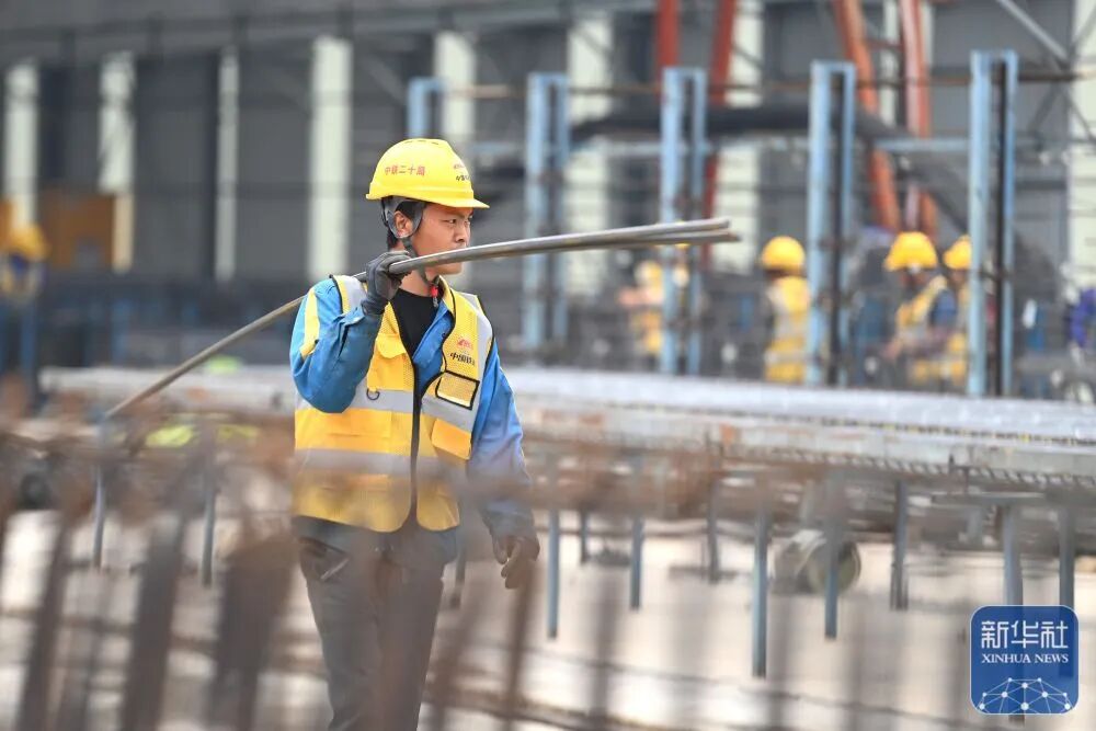 12月23日,中铁二十局的工人在柳州市柳江区三都镇鱼宜高速公路建设工地作业。