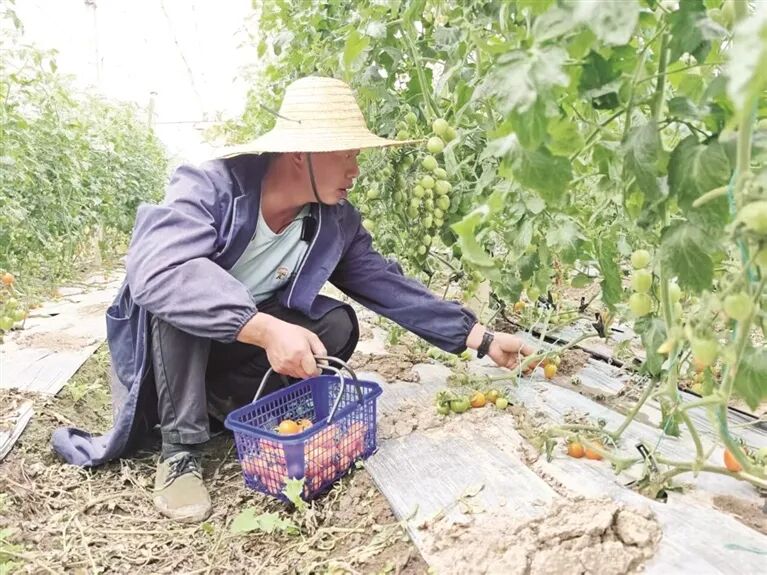 村民在采摘圣女果。