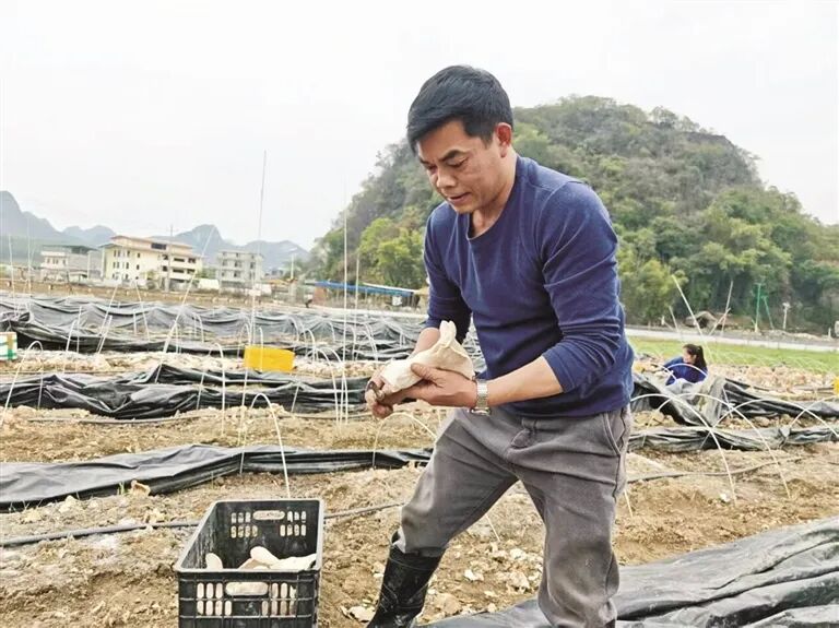 草莓种植基地里,同样是一派繁忙景象。近来,阴雨连绵,该基地负责人韦柳梅带领村民为草莓园加盖防雨膜。“我种草莓十年了,从10亩扩大到20亩,靠的就是精细管理。”她一边查看草莓长势一边说,“眼下正是关键期,香野奶油草莓和甜查理草莓陆续成熟,必须做好防雨防病措施,才能保证品质。”