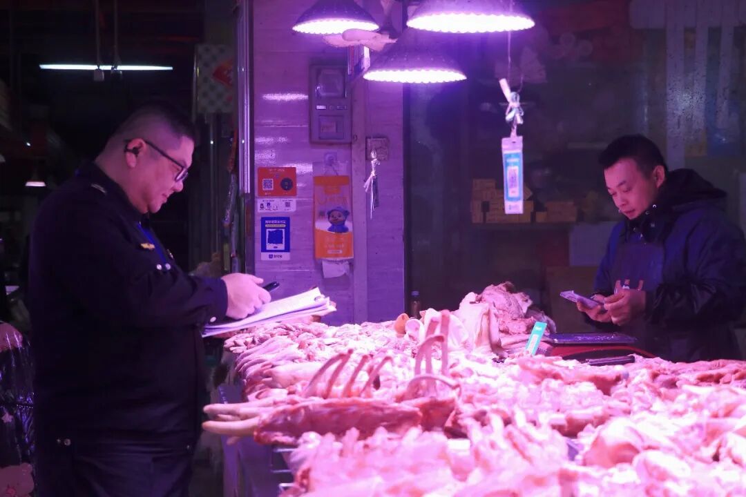1月16日,柳江区市场监督管理局对辖区内农贸市场、餐饮门店等场所开展食品安全专项检查,重点规范肉类经营秩序,聚焦生产、流通、消费全链条,全力守护群众“舌尖上的安全”。