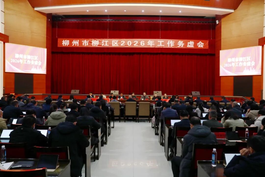 1月20日,柳州市柳江区2026年工作务虚会在区会议中心礼堂召开。会议全面总结2025年工作,深入分析存在问题,科学谋划“十五五”时期发展蓝图,系统部署2026年重点工作。会议通过集思广益、深入研讨,进一步统一思想、明确方向、凝聚合力、提振精神,为奋力实现“十五五”良好开局、加快打造柳州产城融合示范新城区奠定坚实思想基础和行动根基。玉秋静、李团、陈建军、罗云飞等区四家班子领导参加会议。