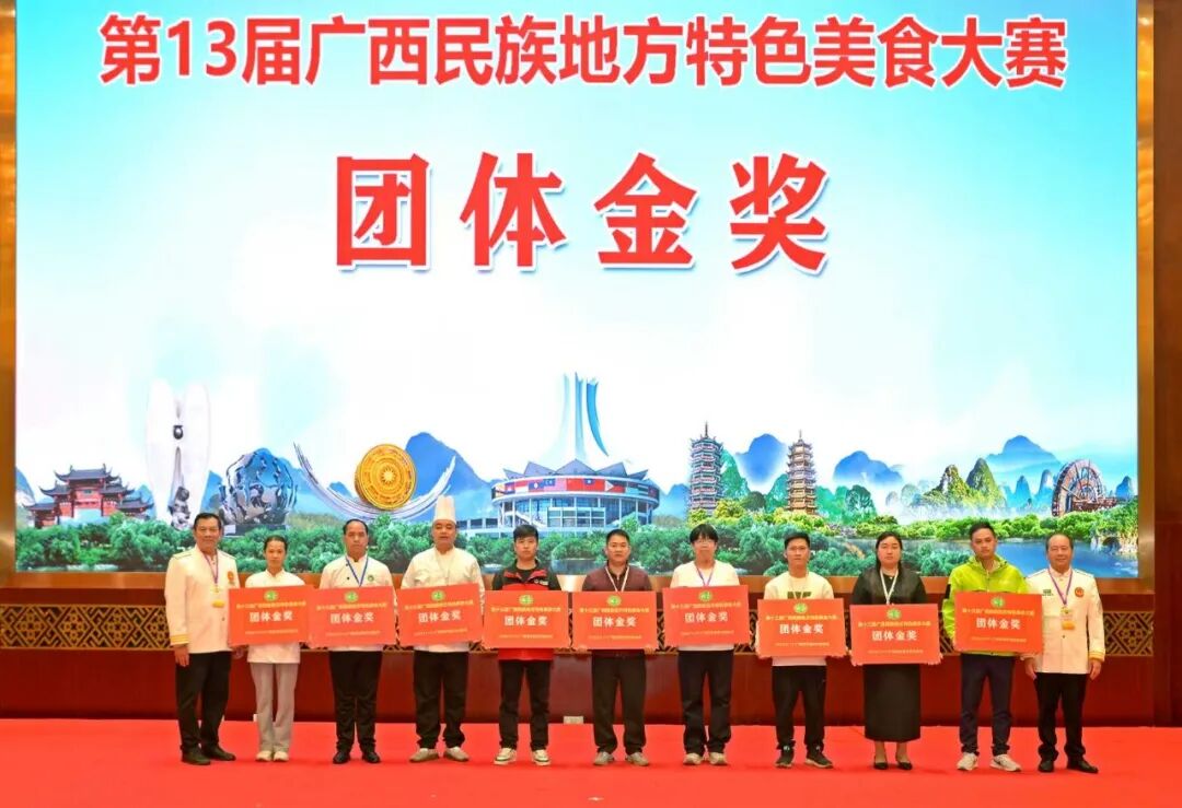 谢连珍(右三)在第13届广西民族地方特色美食大赛获得多个奖项。