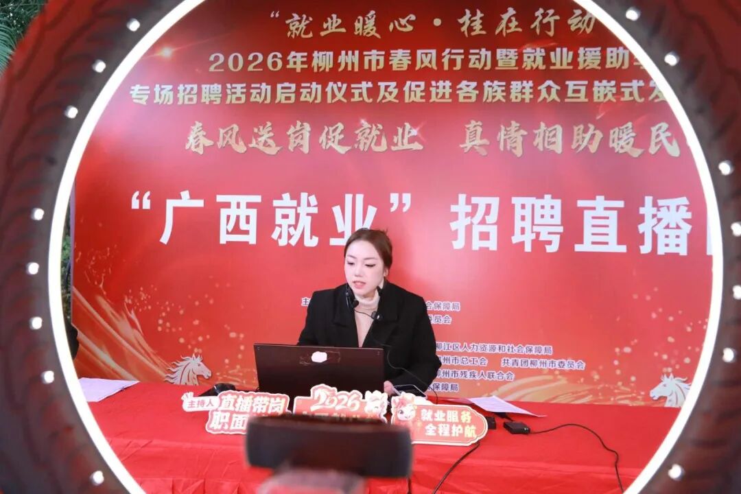 就业是民生之本、发展之基,一头连着企业发展,一头连着万家灯火。2月10日,“就业暖心·桂在行动”2026年柳州市春风行动暨就业援助季专场招聘活动启动仪式及促进各族群众互嵌式发展活动,在柳江区人民文化宫广场举行,把岗位、政策、服务送到群众家门口,以稳就业惠民生助力区域高质量发展。
