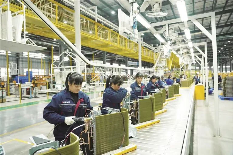 作为柳江区智能家电产业链上的重要生产制造企业,柳州市志格空调有限公司生产车间一派繁忙,多条总装生产线高速运转,工人们有序完成组装、检测、打包等工序。公司副总经理黄乐元说,得益于去年四季度提前备产,目前企业订单已排至今年4月。今年以来已交付订单产品超10万套,同比增长10%。一季度计划生产产品25万套,力争全年产量突破60万套。