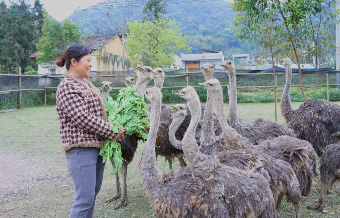 鸵鸟养殖不仅让养殖户鼓起腰包,更激活周边村民的增收链。养殖场每年固定向村民收购玉米、青菜等农作物作为饲料,为乡亲们开辟家门口的稳定增收渠道。村民韦友乔是受益者之一:“以前种玉米要拉到镇上卖,价格忽高忽低,现在直接卖给鸵鸟场,一年卖玉米有近万元收入,日子越过越宽裕。”