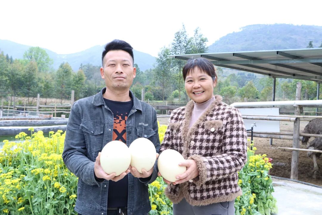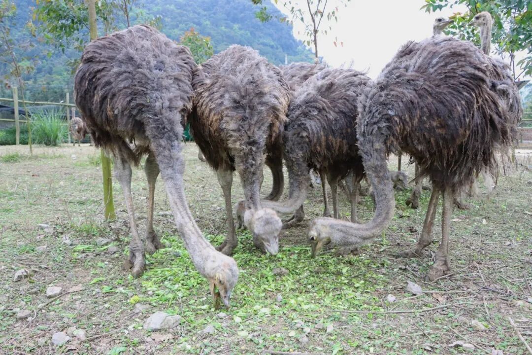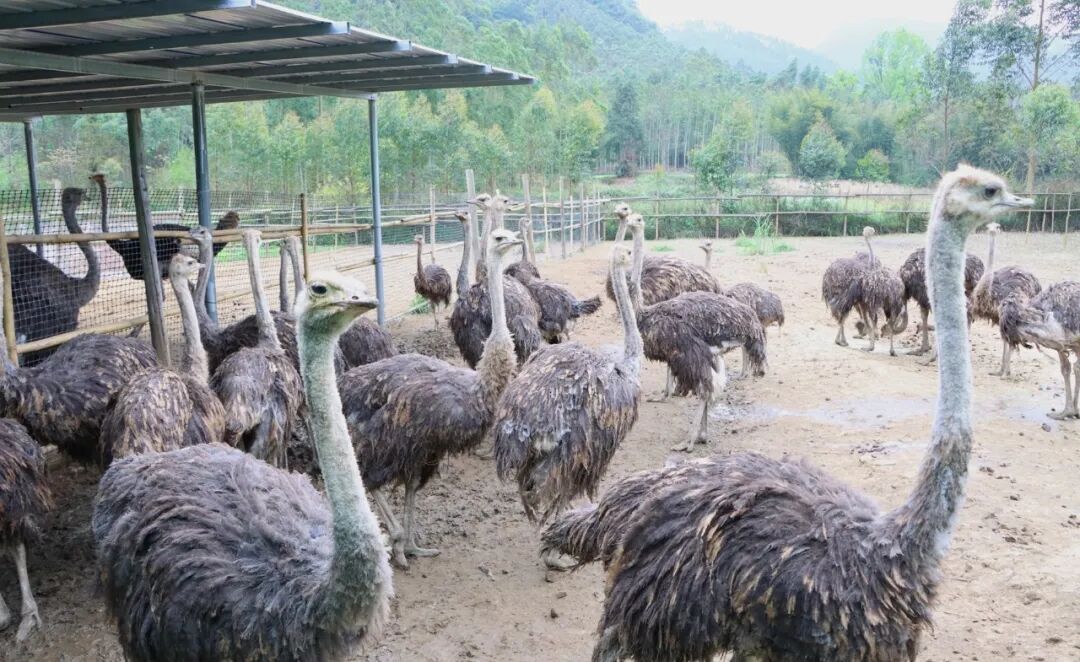 高效益的背后,是日复一日的摸索与坚持。2021年,韦海安、韦晓红夫妇以每只800元的价格从桂林购入20只鸵鸟幼鸟,满怀信心开启创业路。然而,由于疫病防治经验不足、养殖技术不成熟,幼鸟成活率一度偏低,给这对新手创业者当头一棒。“养殖鸵鸟,饲料配比和温度控制是两大命门。”韦晓红坦言,为攻克技术难关,他们一边向资深养殖户拜师学艺,一边在网络上搜索养殖资料,反复摸索实践。如今,他们已经掌握一套成熟的养殖“秘籍”:玉米、野草、青菜科学搭配,每日定时两次投喂;幼鸟环境温度严格控制在30℃左右。技术的突破不仅让成活率大幅提升,更实现从购买幼鸟到自繁自养的跨越,养殖规模稳步扩大至70多只。随着养殖技术日臻成熟,韦海安夫妇的目光也投向更远处,下一步计划引入孔雀、山鸡等特色养殖项目,推动养殖结构向多元化、精品化升级,打造特色生态养殖新标杆。