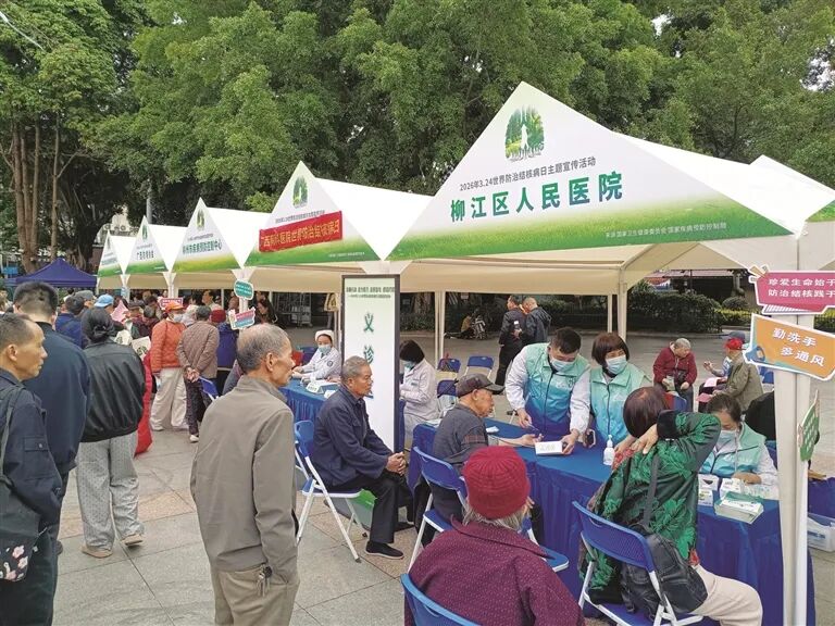 3月21日,世界防治结核病日主题活动暨2026年广西重点地区结核病主动筛查启动仪式,在柳江区人民文化宫广场举行,普及结核病防治知识,筑牢群众健康防线。