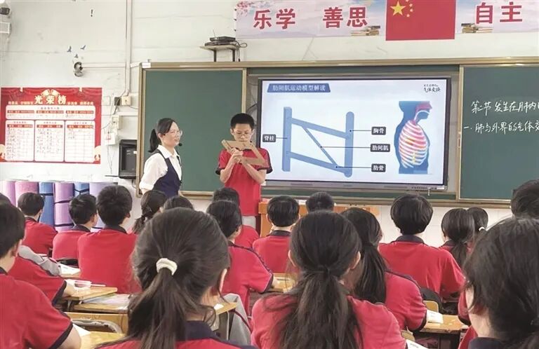 团队的成长,从来不是单向的输出。生物课堂上,学生们主动探索的求知热情、相互交流的思维碰撞,正是“滴润教育”理念生根发芽的生动写照。该学科组用“感知活动—模型演示—思辨探究—链接生活”教学方式,逐步推进知识建构,注重学生科学思维的培养,让课堂更贴合学生的需求。