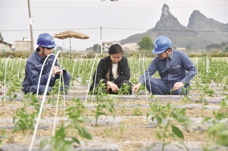 3月30日,南方电网广西柳州柳江供电局工作人员到柳江区进德镇小平屯皱皮青椒种植示范基地,摸排用户的用电需求,并运用红外声学成像仪等科技手段,对种植基地内部线路、用电设备及周边10千伏配网线路进行排查。