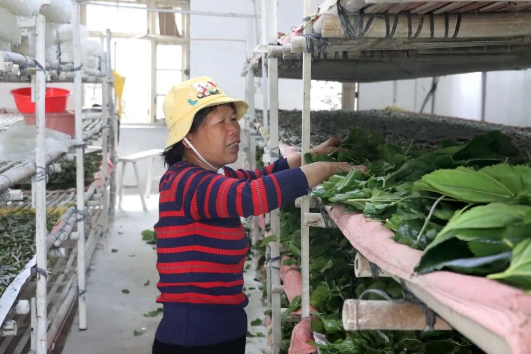 “我种桑养蚕有将近20年了,这是今年第一批蚕,再过3到4天就能吐丝结茧,这一批预计能结200斤蚕茧。”蚕农覃方算介绍道。“从幼蚕到成茧大约只需20天,每年可以养11批左右,一年下来能挣8万多元。”高效养殖周期和可观的经济收益,让桑蚕养殖成为当地村民稳定增收的重要渠道。