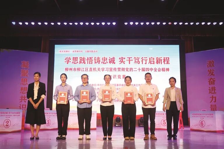 竞赛内容紧扣党的二十届四中全会精神的核心要义,赛程分为初赛和决赛两个阶段,设置个人必答题、快速抢答题、风险挑战题3个环节,题目既涵盖宏观理论,也涉及具体政策,知识体系完整,覆盖面广。经过激烈角逐,最终,该区投资集团“江投逐梦队”获得一等奖;区司法局、区纪委监委相关队伍获得二等奖;区财政局、区应急局、区卫生健康局相关队伍获得三等奖。下一步,柳江区将持续创新学习形式,推动党员干部把学习贯彻全会精神成果融入本职工作,将其切实转化为推动全区经济社会高质量发展的实际成效。