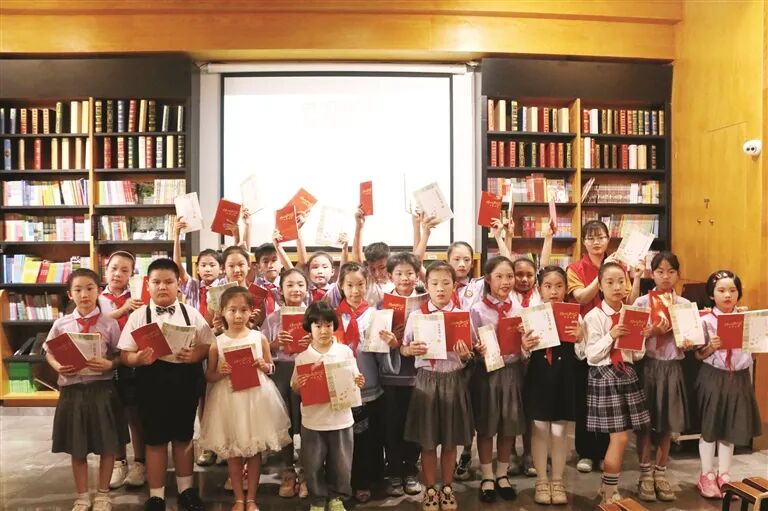 获得赠书的孩子们合影。