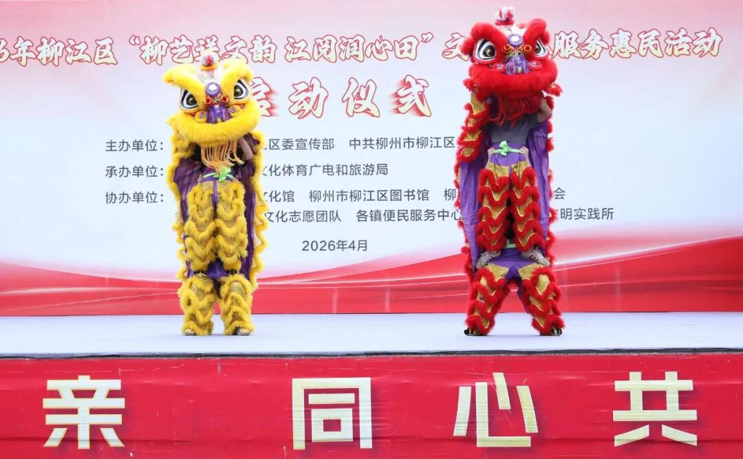 活动还为市民献上精彩文艺演出。区狮韵醒狮传承基地带来的《客家舞狮》率先亮相,表演者腾挪跳跃、神态灵动,非遗文化的独特韵味赢得阵阵喝彩。随后,柳江炫彩艺术团等本土文艺团队轮番登台,民歌连唱《欢歌三月三》、彩调《郎对花》、女声独唱《阳光路上》等节目相继上演,悠扬歌声、曼妙舞姿与传统戏曲交织,为群众献上一场文化盛宴。全体演员共舞《心连心》,将现场气氛推向高潮。