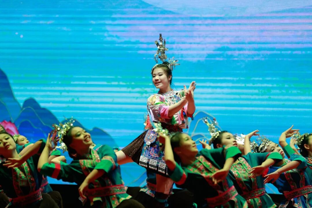 活动现场歌声悠扬、热闹非凡,舞龙舞狮气势磅礴,民族歌舞、大鼓表演、山歌串烧、民族服装秀等节目轮番登场,《壮歌声声阿嘞嘞》《黎乡笠影》等精彩表演富有民族文化底蕴,赢得阵阵喝彩。文艺汇演后,千人多耶与歌圩对歌掀起阵阵欢乐浪潮,师生们踏歌起舞、千人同乐,在山歌擂台上一展歌喉,于沉浸式互动中增进民族情谊。