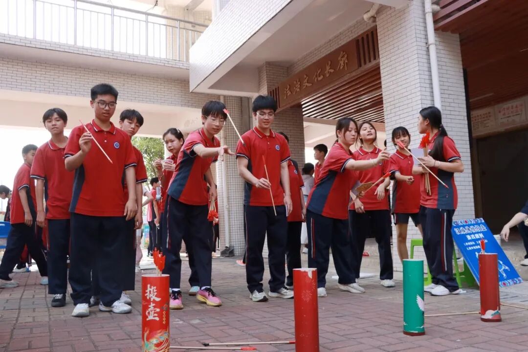 民俗体验区同样人气高涨,投壶、两人三足等传统项目深受欢迎,同学们踊跃参与,沉浸式感受民俗魅力,完成体验即可领取纪念礼品。