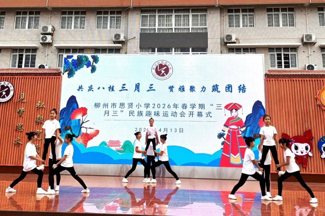 4月15日,柳州市思贤小学以“共庆八桂三月三 贤雅聚力筑团结”为主题,开展2026年春学期“广西三月三”民族趣味运动会。