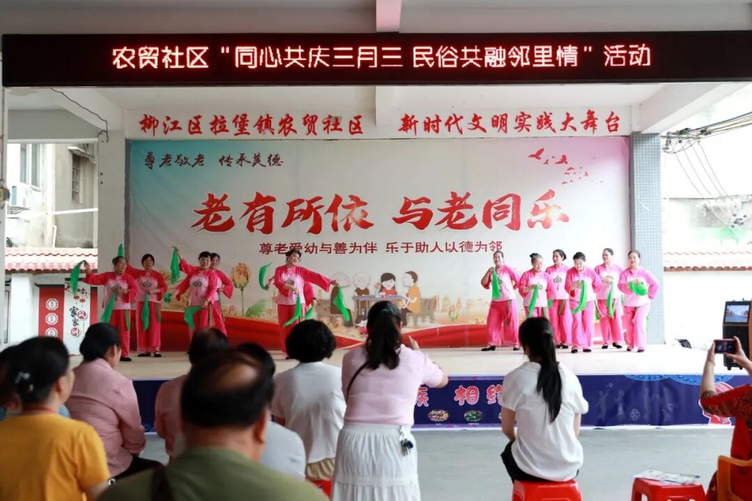 4月14日,农贸社区举办“同心共庆三月三 民俗共融邻里情”活动,以沉浸式民俗体验传承“广西三月三”优秀传统文化,既增进邻里情谊,也丰富辖区居民的精神文化生活。