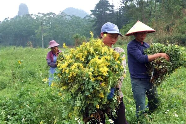 “土博镇气候阴凉湿润,排水条件也好,契合岩黄连的生长习性,种出来的药材品质上乘。我种植的70亩岩黄连迎来丰产,采收工作预计需要5至6天。”种植户覃维定介绍,将岩黄连剔除杂质后制成干品,预计亩产约300斤,按照当前市场每斤40元的收购价计算,亩产值约1.2万元。采收完毕后,种植基地将轮作紫苏、沙姜等经济作物,既能有效改善土壤结构,又能大幅提升土地利用率,实现一季多收,进一步拓宽增收渠道。